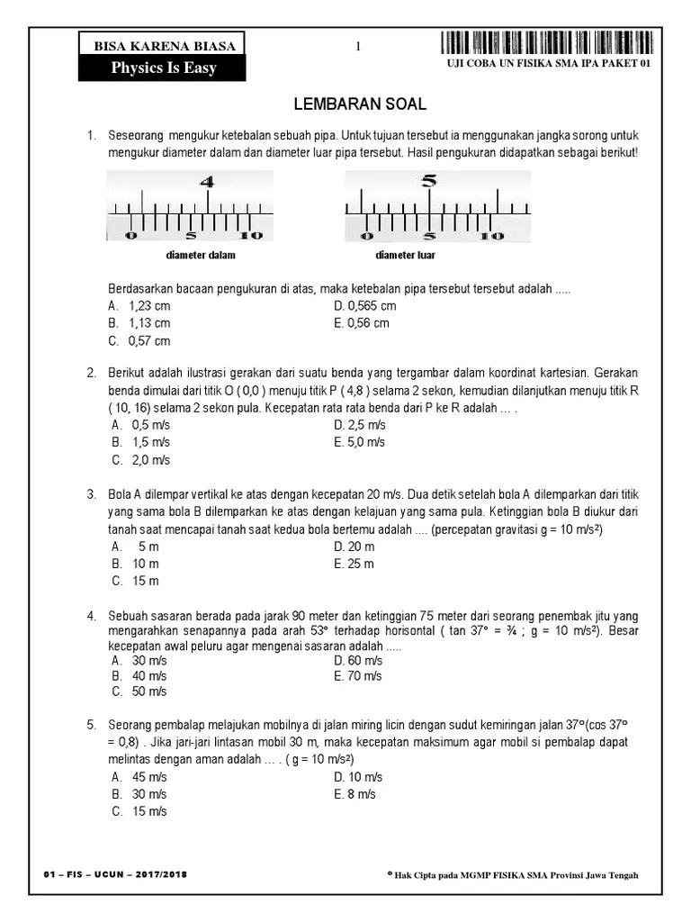 Usbn 2017/2018 hak cipta pada dinas pendidikan provinsi jawa barat dokumen negara fisika sma/ma mipa 2. Naskah soal un fisika sma 2015 paket 1. Scribd adalah situs bacaan dan penerbitan sosial terbesar di dunia. Buku sukses ujian nasional tahun 2018 'kisi ujian nasional 2018 disertai contoh soal dan pembahasan berisi materi esensial sesuai dibuat untuk kesuksesan . 20 m/s 2018 dan pembahasan d.